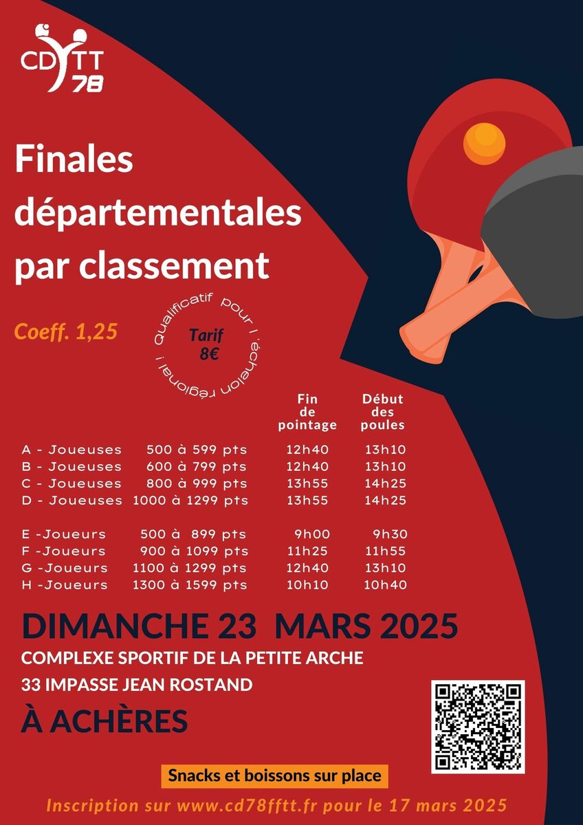 Voir le détail ci-après: Finales par classement...les inscrits - COMITE 78 TENNIS DE TABLE.